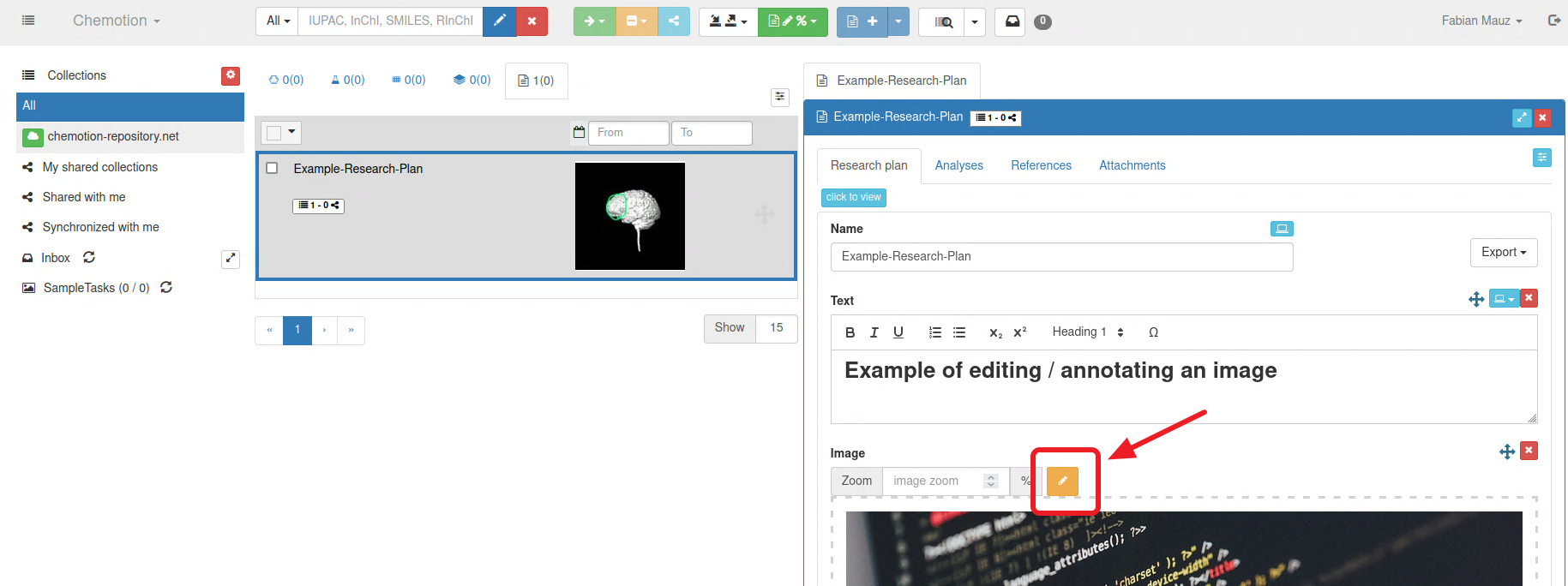 Images can be edited in several places on the ELN: