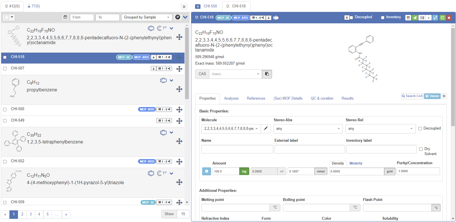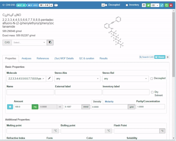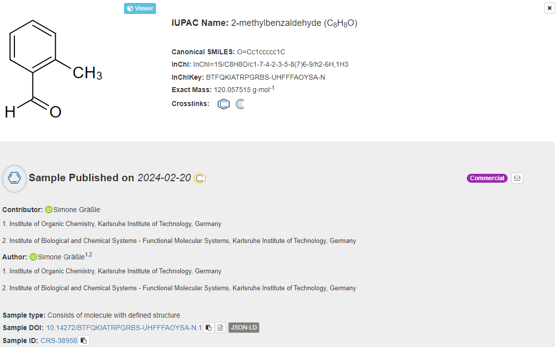 Chemotion Repository provides a global label called Commercial to define the compounds obtained from suppliers for the purpose of analyzing derivatives.