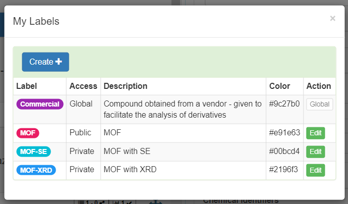 - Click Create if you want to create a new label. You can also click Edit to modify an existing label.