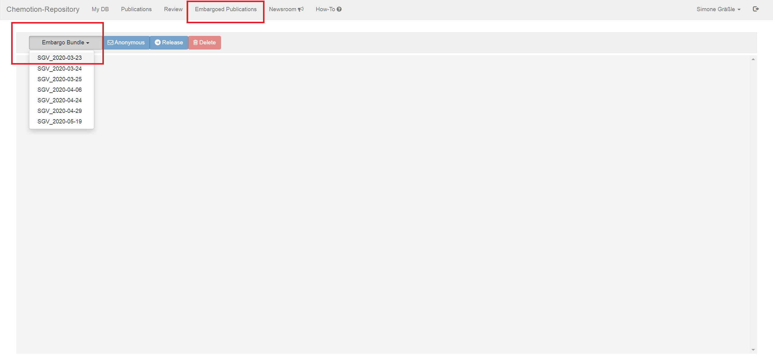 Release: please open the "Embargoed Publications" panel and select an embargo as described above. Please select "Release".