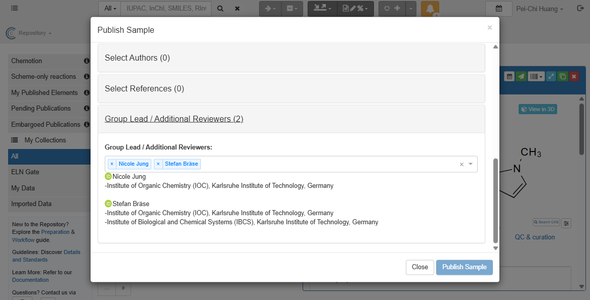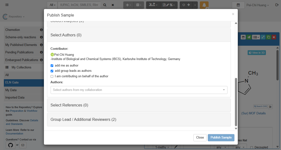 Incorporate your group leader(s) into the workflow to allow him/her to review the submission before it is published. By default, your group lead(s) will be selected as Additional Reviewers. It is strongly recommended to add the group leader(s) to ensure that the group leader(s) can confirm that the data submission was discussed and is desired.